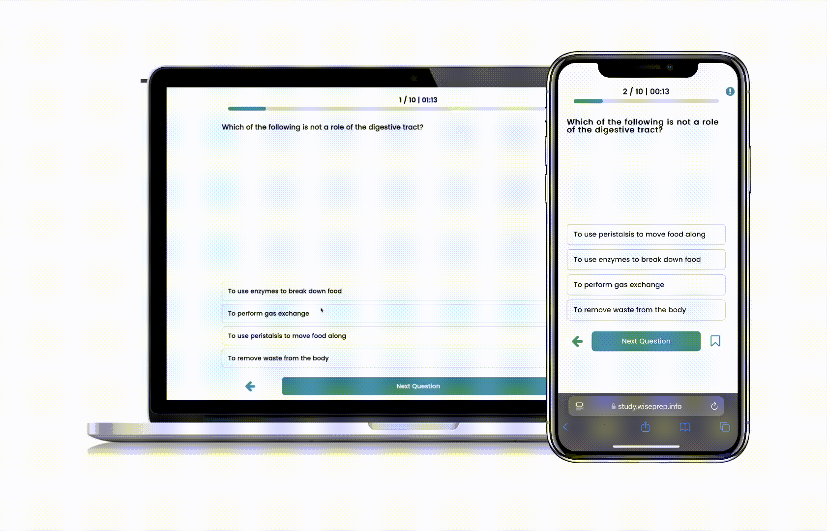 Wise Prep’s professional educators analyze and break down every concept and topic your exam will test you on to craft accurate, challenging questions to prepare you for your exam. They then carefully build out thorough, detailed, step-by-step answer explanations so that you can effectively and efficiently learn the content and excel on exam day.